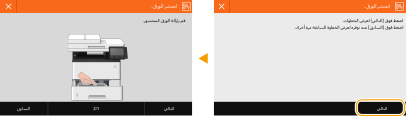 في بعض الحالات عند حدوث خطأ ما، يتم عرض إرشادات حول كيفية التعامل مع الخطأ. اتبع الإرشادات التي تظهر على الشاشة لحل المشكلة. وتكون الشاشة المعروضة عند حدوث انحشار ورق كما هو موضح على النحو التالي كمثال.