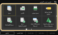 يمكنك إضافة أزرار الاختصار إلى الشاشة الرئيسية لوظائف الاستعمال المتكرر مثل <نسخ>و <فاكس> و<مسح ضوئي>. على سبيل المثال، يمكنك تنفيذ المهمات بسرعة وفاعلية أكبر من خلال ضبط سلسلة من الإعدادات (مثل "مسح مستند أصلي ضوئيًا على الوجهين وحفظه كملف PDF مضغوط وإرساله بواسطة البريد الإلكتروني") على زر واحد.