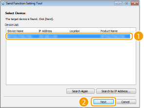 انقر فوق [Search Again]. إذا استمرت المشكلة، انقر فوق [Search by IP Address]، وأدخل عنوان IP الخاص بالجهاز، ثم انقر على [OK].