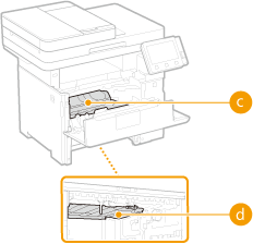 عند إزالة الورق المحشور، لا تقم بإيقاف تشغيل الجهازسيؤدي إيقاف تشغيل الجهاز إلى حذف البيانات التي تتم طباعتها. كن حذرًا وخصوصًا عند استلام مستندات بالفاكس.