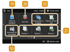 Botons de dreceraMostra les "Opcions preferides" desades per a la còpia, l'enviament de fax i la lectura. Addició de botons a la pantalla Inici