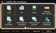 Podeu afegir botons de drecera a la pantalla Inici per a les funcions que feu servir amb més freqüència, com ara <Còpia>, <Fax> i <Lectura>. Per exemple, podeu dur a terme tasques d'una manera més ràpida i eficient si assigneu una seqüència d'opcions (com ara, "Llegir les dues cares d'un original, desar-lo com a fitxer PDF molt comprimit i enviar-lo per correu electrònic") a un sol botó.