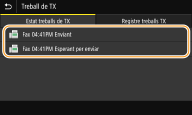 Seleccioneu el document l'estat del qual vulgueu comprovar a la pestanya <Estat treballs de TX> o <Estat treballs de RX>.