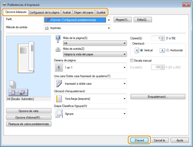 Especifiqueu les opcions d'impressió segons calgui i feu clic a [D'acord].