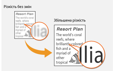 Можна відрегулювати різкість зображення. Збільште різкість, щоб збільшити різкість тексту та ліній, або зменште її, щоб покращити зовнішній вигляд фотографій із журналу. Настроювання різкості