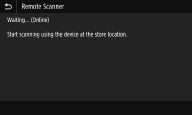 Якщо після відображення наведеного нижче екрана сканування не виконується протягом певного часу (під час сканування апарат перебуває в режимі онлайн), апарат автоматично перейде в режим автономної роботи. Укажіть проміжок часу, за який апарат має перейти в режим офлайн.