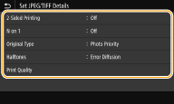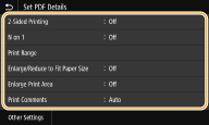 ![]() Для PDF-файлів можна надрукувати 9 або 16 сторінок із зображеннями на одній стороні аркуша паперу, використовуючи шаблон <N on 1> у меню <Set PDF Details>.