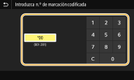 Si aparece una pantalla de confirmaciónCuando <Confirmar n.º fax introducido> esté establecido en <On>, reaparecerá la pantalla de introducción para que pueda confirmar el destino (Confirmar el número de fax introducido). Introduzca el destino de nuevo.