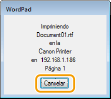 Cancelación desde una aplicaciónEn algunas aplicaciones, aparecerá una pantalla como la que se muestra a continuación. Puede cancelar la impresión haciendo clic en [Cancelar].