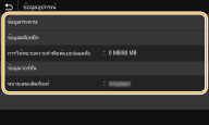 เมื่อคุณเลือก <Status Monitor> หน้าจอจะปรากฏขึ้นเพื่อให้คุณสามารถตรวจสอบความคืบหน้าของการดำเนินการกับเอกสารและสถานะของเครื่อง (ปริมาณที่เหลืออยู่ในตลับหมึก ฯลฯ) และการตั้งค่าเครือข่าย เช่น ที่อยู่ IP ของเครื่อง