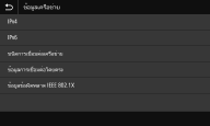 แสดงการตั้งค่าเครือข่าย เช่น ที่อยู่ IP ของเครื่องและสถานะ เช่น สภาพของการสื่อสารผ่าน LAN แบบไร้สาย
