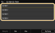 Để có thể nhanh chóng gọi lên các đặt giống nhau cho Sao chụp, Fax và Quét, bạn có thể đăng ký chúng dưới dạng cài đặt ưa thích của bạn. Bạn có thể thêm các tổ hợp cài đặt đã đăng ký lên màn hình Home dưới dạng phím tắt.