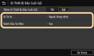 Chọn <Bật> trong <Thêm ID Thiết Bị Đầu Cuối Gửi>