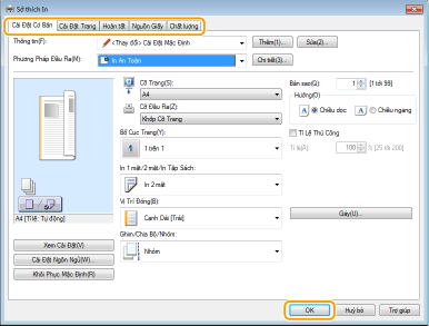Chỉ định cài đặt in khi cần thiết, và nhấp vào [OK].