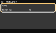 Chọn <Bật> để in ở chế độ tiết kiệm mực. Chọn <Bật> khi bạn muốn kiểm tra bố cục hay các đặc điểm hiển thị khác trước khi tiến hành in một tài liệu lớn. ![]() Khi <Tiết Kiệm Mực> được đặt thành <Bật>, <Mật độ> sẽ không khả dụng.