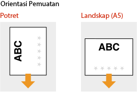 Muatkan kertas dengan muka berlogo depan (muka untuk mencetak halaman pertama dokumen) menghadap ke atas.