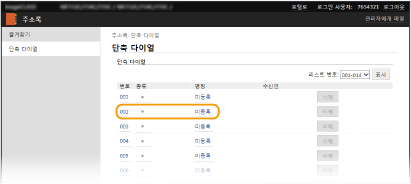 "미등록"으로 명명된 항목에 대해 [번호], [종류] 또는 [명칭] 아래의 텍스트 링크를 클릭합니다.