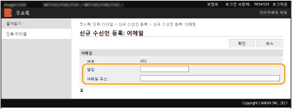 컴퓨터를 사용하여 기기의 주소록에 수신인을 등록하거나 등록된 수신인의 정보를 편집할 수 있습니다. 공유 폴더 또는 FTP 서버 주소를 여기에서 지정합니다.