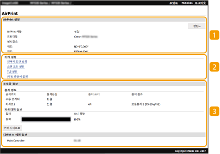 AirPrint로 사용 가능한 스캔 기능을 켜기/끄기로 할 수 있습니다. 출고 시 기본 설정은 <설정> 입니다.