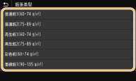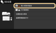 注册了默认纸张设置后,装入纸张时将不会显示纸张设置画面,并且将一直使用相同的设置。如果在未改变纸张设置的情况下装入不同尺寸或类型的纸张,本机可能无法正常打印。为了避免此问题,请在步骤 3 中选择 <装入纸张时指定>,然后再装入纸张。