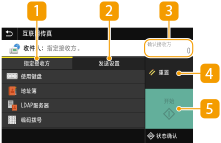 选择该选项卡以在地址簿或 LDAP 服务器中搜索接收方,输入编码拨号,或者使用调用设置指定接收方。