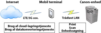 Hvis du vil bruge en tjeneste, der kræver en internetforbindelse, som f.eks. Data Conversion Service eller en cloud-lagringstjeneste, skal du oprette forbindelse til internettet via et mobiltelefonnetværk såsom LTE eller 3G. Hvis du opretter forbindelse til internettet via et mobiltelefonnetværk såsom LTE eller 3G afholdes udgifterne af dig som kunde. |