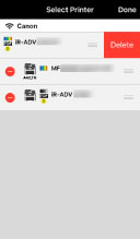 På skærmen [Select Printer] kan du se oplysninger om enheden og status for enheden, og i listen over registrerede enheder kan du vælge den enhed, du vil bruge.