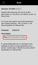 Zadajte názov hostiteľa zobrazený na obrazovke [Scan] aplikácie Canon PRINT Business.