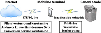 Kui soovite kasutada Interneti-ühendust eeldavaid teenuseid (nt Data Conversion Service) või pilveteenust, looge Interneti-ühendus telefoni andmesidevõrguga (nt LTE või 3G). Kui loote Interneti-ühenduse telefoni andmesidevõrgu (nt LTE või 3G) kaudu, peab ühenduskulud katma klient ehk teie. |