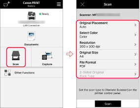 Можете да сканирате, управлявате документи и отпечатвате от iPhone или iPad чрез свързано към мрежа многофункционално устройство на Canon.