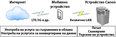 Ако искате да използвате услуга, която изисква интернет връзка, като например Data Conversion Service или услуга за съхранение в облака, свържете се към интернет чрез мобилна мрежа, като LTE или 3G. Ако се свържете към интернет чрез мобилна мрежа като LTE или 3G, разходите за връзката ще се поемат от вас. |
