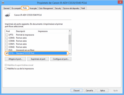 Assegureu-vos que hi ha el port correcte seleccionat per a la impressora.