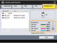 Podeu comprovar la quantitat restant de consumibles des de Remote UI (IU remot). Comprovació de l'estat de l'equip
