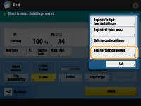 efterfulgt af <Skift standardindstillinger>. Hvis du logger på maskinen med personlig godkendelsesadministration (Logge på maskinen) inden udførelse af denne indstilling, bliver den registreret som din egen personlige standardindstilling (Liste over elementer, der kan tilpasses). |