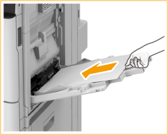 Tulostetun paperin taustapuolelle tulostaminen (2-puolisen sivun 2. puoli)Voit tulostaa tulostetun paperin taustapuolelle. Suorista mahdolliset käpristymät ja aseta paperi monitoimitasolle tulostuspuoli alaspäin (aiemmin tulostettu puoli ylöspäin). Valitse sitten paperityypin valintaikkunassa <2. sivu 2- puol. arkista>.