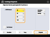 Als u de papierformaten die u het vaakst gebruikt, opslaat onder knoppen <S1> tot <S5>, kunt u ze met één aanraking oproepen. Opslaan van vrij formaat papier (Papier van aangepast formaat)