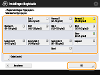 Selecteer de papierlade waarin u papier hebt geplaatst en druk op <Gebruikersformaat>.