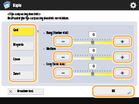U kunt maximaal vier instellingen registreren na aanpassing. Druk na het aanpassen van de kleur op <Oproepen/Registreren>