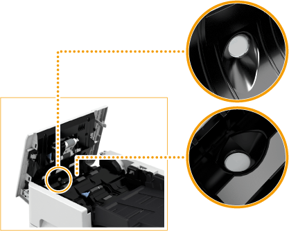 Zorg ervoor dat geen vreemde materialen zoals papiersnippers blijven hangen rond de detectiesensoren van de invoer voor meerdere vellen (er zijn twee sensoren). Als u dergelijke materialen opmerkt, verwijdert u deze met een zachte doek.