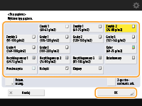 przycisk, do którego została przypisana koperta jako typ papieru <OK>. Rejestrowanie najczęściej używanego formatu i typu papieru dla tacy wielofunkcyjnej |
