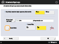 Z poziomu ekranu Podstawowych funkcji skanowania możesz zapisać kopię wysłanego dokumentu poprzez wysłanie go do wielu odbiorców obejmujących również odbiorcę faksu. Aby na ekranie Podstawowych funkcji skanowania wyświetlić odbiorców faksu, należy dla opcji <Włącz Faks w Skanowaniu i Funkcje Wysyłania> wybrać ustawienie <Włącz>. <Wyświetl Funkcje Faksu>