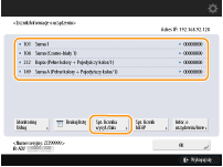 Na tym ekranie można również sprawdzić informacje licznika dla poszczególnych aplikacji MEAP. Naciśnij opcję <Spr. licznik MEAP> na ekranie w kroku 2. Jeżeli na tym samym ekranie zostanie naciśnięta opcja <Infor. o urządzeniu/Inne> <Spr. Konfigur. Urządzenia>, można sprawdzić zainstalowane w urządzeniu wyposażenie opcjonalne oraz wersję układu zabezpieczeń dotyczącego szyfrowania danych na dysku twardym.