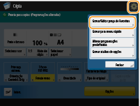 Ecrã das funções básicas de cópia