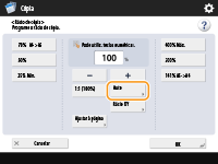 Ao copiar com um rácio de cópia idêntico para papel com o mesmo formato do original, as extremidades do original copiado poderão não ser completamente apresentadas. Para evitar isso, reduza tamanho da imagem carregando em <Rácio de cópia>