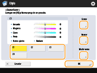 Pode alterar o nome dos botões de <C1> a <C4>. Selecione o botão que pretende alterar, carregue em <Mudar nome> e introduza um novo nome.