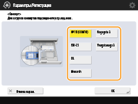 Если кнопкам <S1>–<S5> назначены часто используемые форматы бумаги, то требуемый формат бумаги можно задать одним нажатием соответствующей кнопки. Регистрация бумаги произвольного формата (Бумаги пользовательского формата)