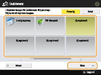 Inställningar som kan registreras i <Favoritinställningar> för funktionen <Scanna och lagra> Inställningsskärmen och åtgärder för att scanna och spara
