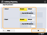 Tryck på <Ange efter portnummer> för att använda portnummer när du anger portar som IPSec gäller för. Välj <Alla portar> för att tillämpa IPSec för alla portnummer. För att tillämpa IPSec för att ett visst portnummer, tryck på <Enkel port> och ange portnumret. När du har angett portar, tryck på <OK>. Ange porten för den här maskinen i <Lokal port> och ange port för aktuell kommunikationspeer i <Fjärrport>.