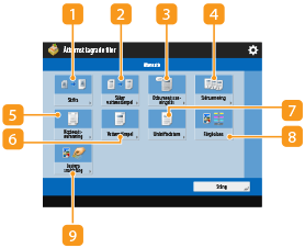 När du trycker på <Åtkomst lagrade filer> på <Huvudmeny>, och sedan trycker på <Brevlåda>, <Avancerat utrymme>, <Nätverk> eller <Minnesenhet> för att skriva ut filer, visas följande inställningsskärm.