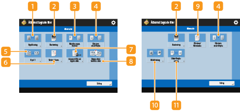 Visar status för inställningen för pappersformat för utskrift och antalet utskrifter. Kom ihåg att bekräfta inställningarna för att skriva ut på rätt sätt. För att ändra inställningarna, tryck på knappen under skärmbildsdelen. Om du vill ändra antalet utskrifter, anger du värdet med sifferknapparna.